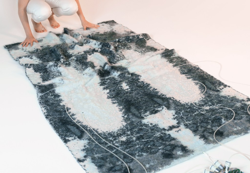 My interest in the interaction between the human body and materials, conductive textiles, and weaving inspired the artistic process. The theme of textile surfaces imitating living beings has emerged from yearning for touching and closeness: During the global pandemic and the ongoing wave of extinction, I imagined a world where we are increasingly physically separated from each other and other animals. What if, in the future, we are accompanied by robot pets and companions? Against this backdrop, this work speculates how textiles could create an illusion of being close to another living creature.