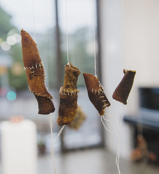 The inspiration came from the leather-like properties of fruit skin. We practised tattooing on it. They looked the same as my own skin.