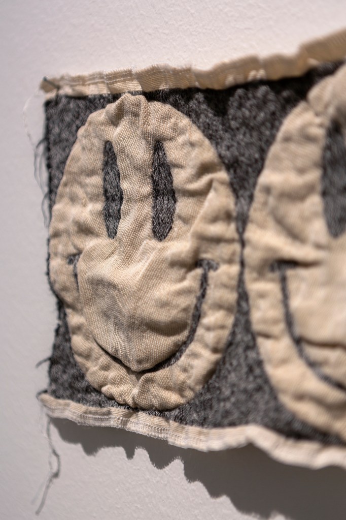 2020woven two-layered textilefelted wool, cottonexhibited at Artcenter Mältinranra, Tampere, Finland