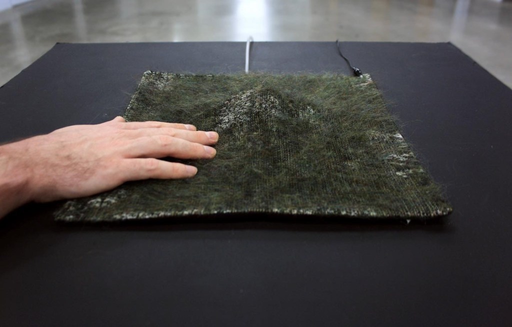 The piece was a starting point of a larger textile design project looking into the possibilities of creating multi-sensory electronic textile surfaces that imitate living beings, speculating on how textiles could create an illusion of being close to another living being and being touched by a living creature.